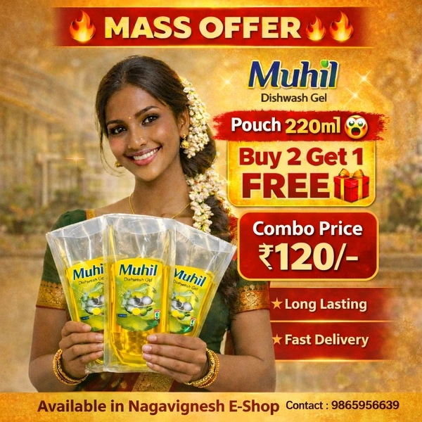 Muhil Dishwash Gel (3*220ml) Pouch Combo Pack